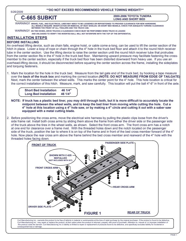 Choosing the right gooseneck hitch is only half the battle in preparing your pickup truck for towing a gooseneck trailer. CURT gooseneck hitches are a premium option in the heavy-duty towing industry, but they are only one of the members in the heavyweight tag team that is CURT gooseneck towing. While a gooseneck hitch gets all the glory above the floor of your truck bed, gooseneck installation brackets provide sure footing and a solid foundation for that oversized gooseneck trailer. Gooseneck installation brackets work by bolting onto the frame of your truck, typically using pre-existing holes. With a set of brackets firmly bolted on, a gooseneck hitch is able to be attached and is given the strength it needs to manage the massive amount of weight of a gooseneck trailer. With so many gooseneck hitch options available from CURT, we wanted to make sure we offered the gooseneck installation products needed to give you a complete towing package. Our installation brackets fit multiple vehicles and hitch heads. This particular set of gooseneck installation brackets is able to work with certain CURT Double Lock gooseneck hitches. It is rated to the vehicle's maximum gross trailer weight capacity and provides a custom fit for certain years of the Toyota Tundra (see application info to verify fitment). With each gooseneck installation bracket sub kit, we provide the necessary hardware for an easier installation, and we coat our gooseneck brackets in a liquid A-coat to make sure rust and other potential damages are not a problem.
