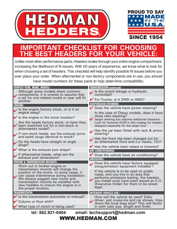 This replacement header parts kit includes all of the gaskets, fasteners, fittings, spacers, and any other special component that comes with the original Hedman Hedders, when they ship from the Hedman factory in Whittier, California.