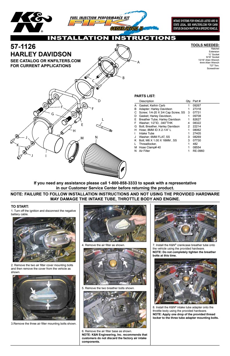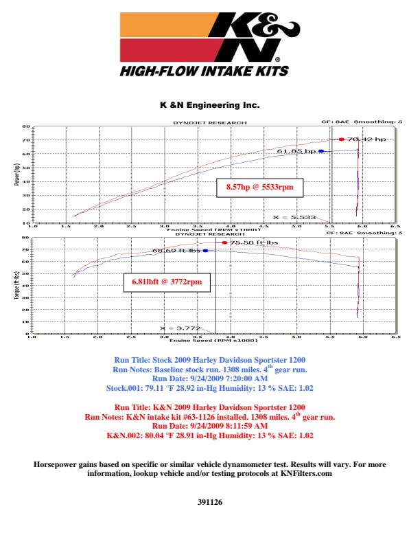 K&N FIPK air intakes for select Harley-Davidson Touring, Softail, Twin-Cam & Sportster motorcycle models increase power by eliminating the restrictive stock air cleaner and replacing it with a low restriction intake.